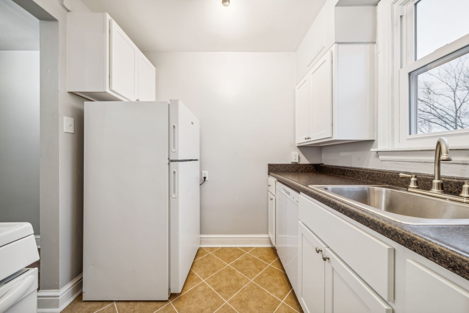 Stylish Flooring: Cozy carpet in the living and dining areas, and bedrooms, and elegant ceramic tile in the kitchen and bath.