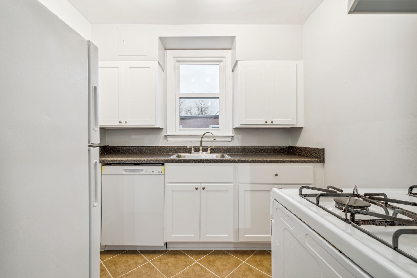 Modern Kitchen: Enjoy an updated, fully equipped kitchen featuring a fridge, gas stove, and dishwasher.