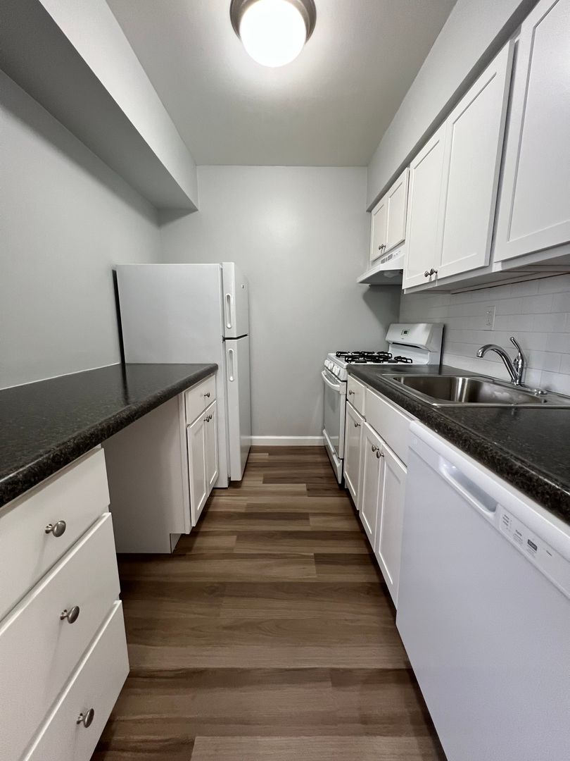 -Updated, equipped kitchen with fridge, gas stove & dishwasher.