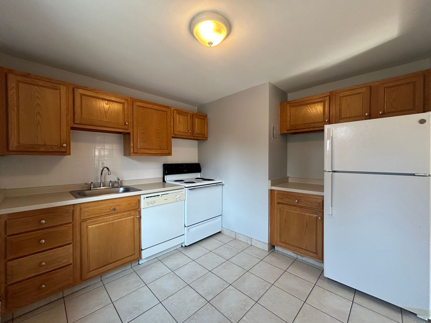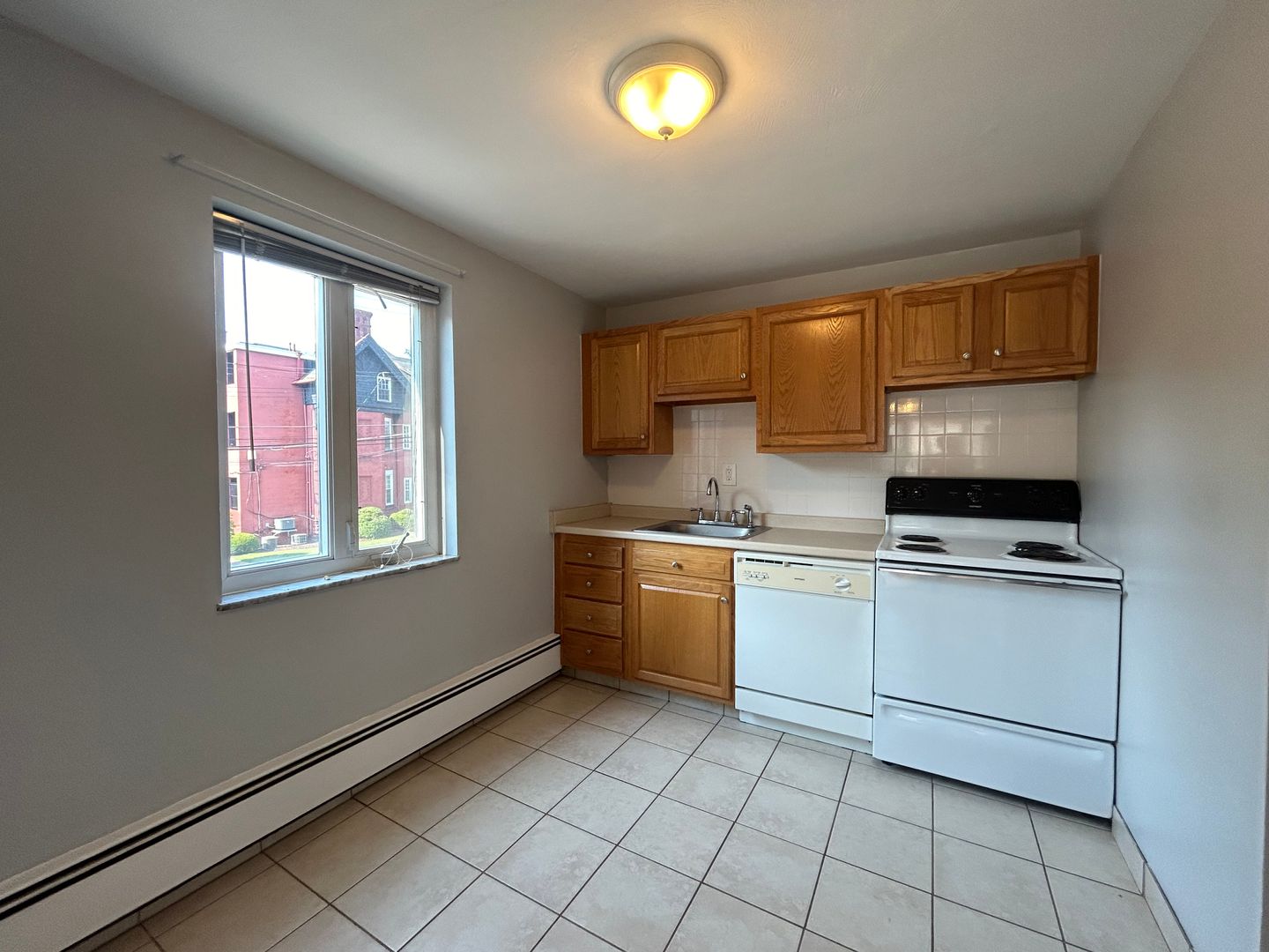 - Equipped kitchen with fridge, electric stove, and dishwasher