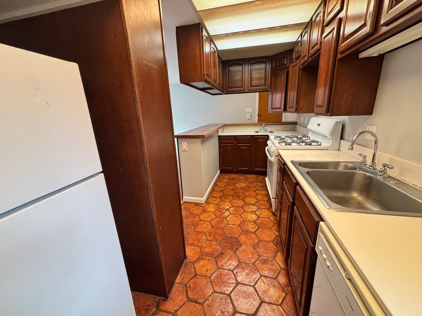 - Equipped kitchen with fridge, dishwasher, and gas stove